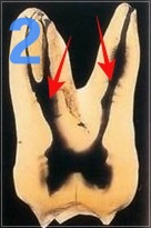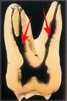 그림 2: 빨간색으로 표시한 검은색 선이 바로 치아 내부 신경입니다.