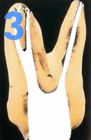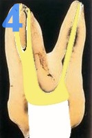 그림 4: 신경을 제거하여 생긴 빈 공간에 소독 액체를 집어넣은 모습입니다.(노란색 = 소독 액체)