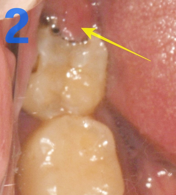 사진 2번 보시면 노란색 화살표가 가리키고 있는 부위는 사랑니를 덮고 있는 잇몸입니다.