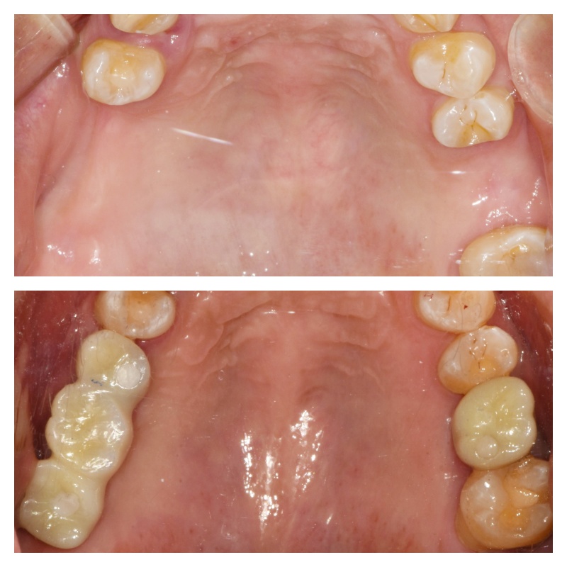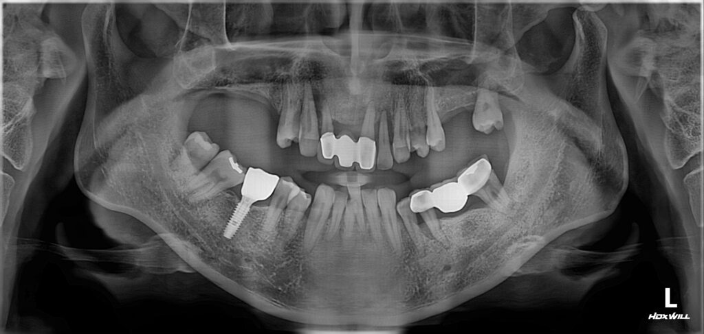 위와 같이 임플란트 치료가 진행되었습니다. 상악 어금니는 상악동 거상술을 동반하여 뼈이식 임플란트를 식립하였고