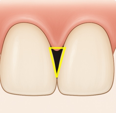 블랙트라이앵글은 이름 그대로 치아와 치아 사이에 생기는 검은 삼각형 모양의 공간을 말합니다.