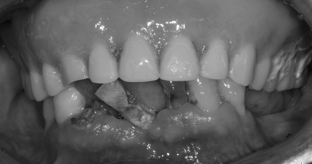 하악(아래턱)의 경우에는 치아가 일부 남아 있었지만, 심한 치주염으로 인해 치아 대부분이 손상된 상태였습니다.