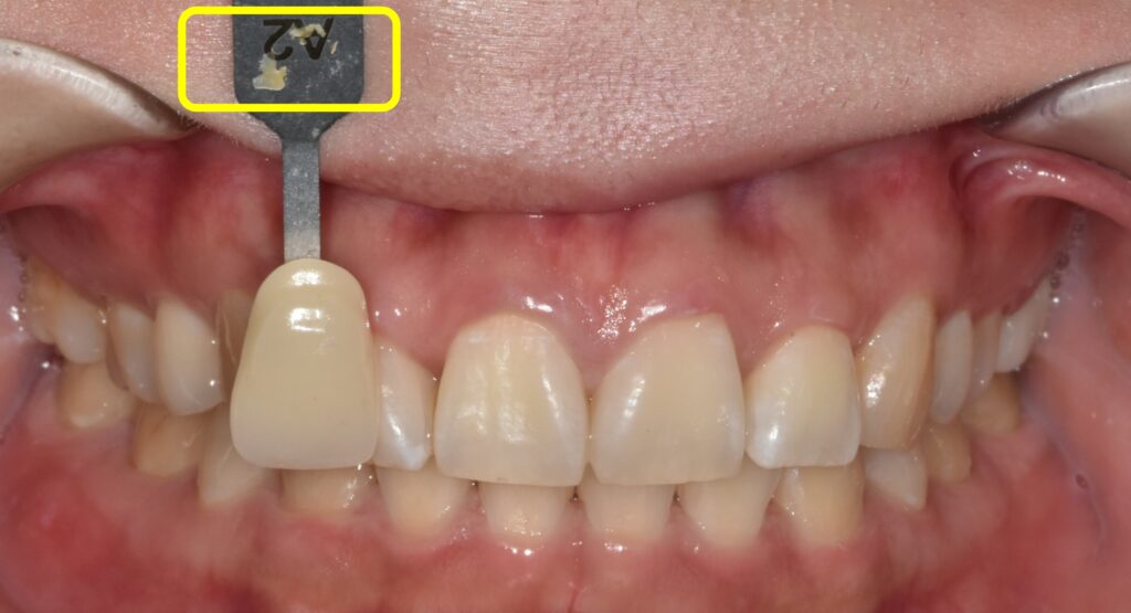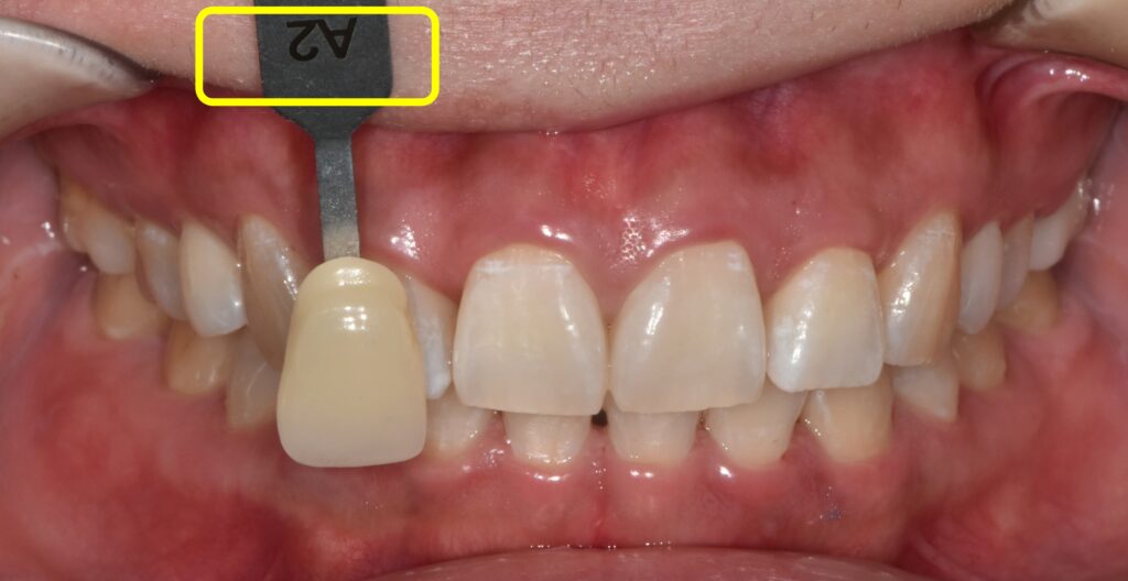 a2 색조를 가진 치아모형과 환자분의 치아 색의 차이를 비교해보시면