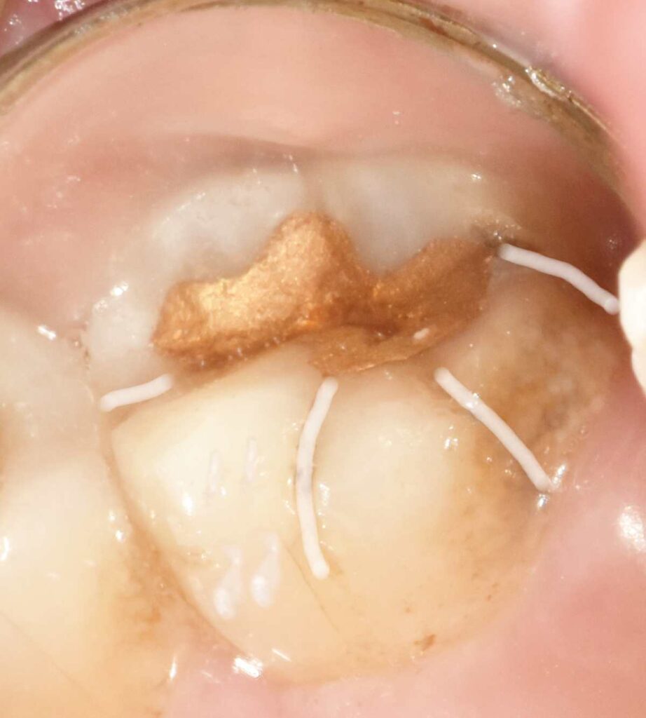 환자분께서 오른쪽 어금니 부근이 씹을 때마다 찌릿하고, 간헐적으로 통증이 온다고 내원하셨어요. 육안으로 봤을 때는 충치가 뚜렷하지 않았지만, 자세히 살펴보니 치아 표면에 크랙(균열)이 확인되었습니다.
